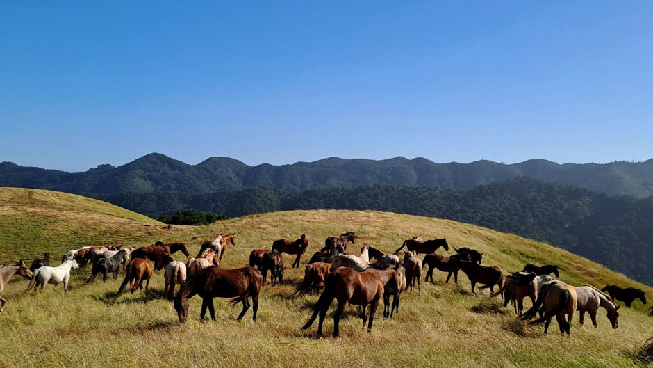 Wild horses at RTF’s San Luis Obispo, Calif., satellite sanctuary, where RTF has worked with grazing experts and Cal Poly rangeland management students to restore about 1,000 acres of grassland. Photo by JaeHyeon Choi.