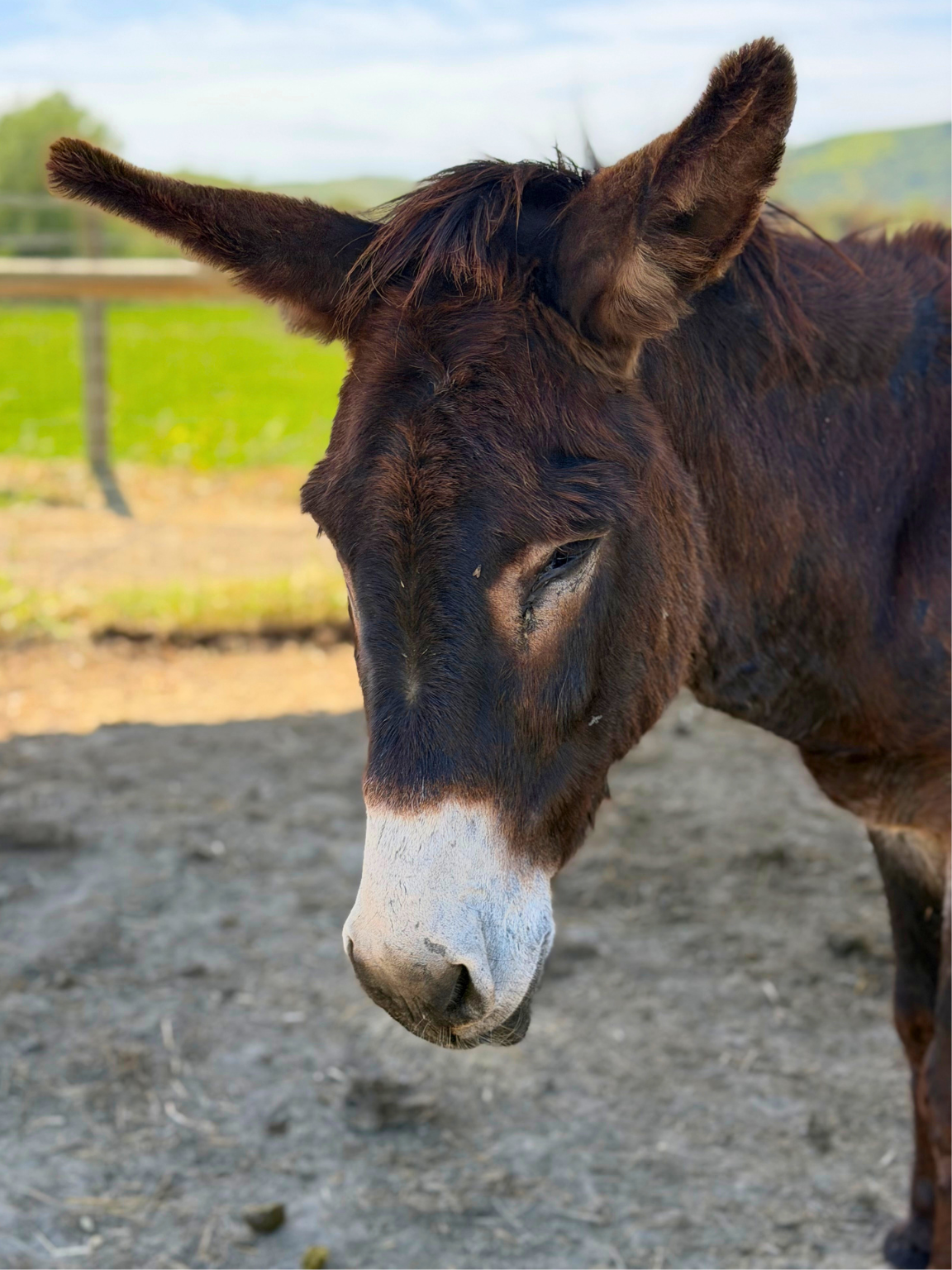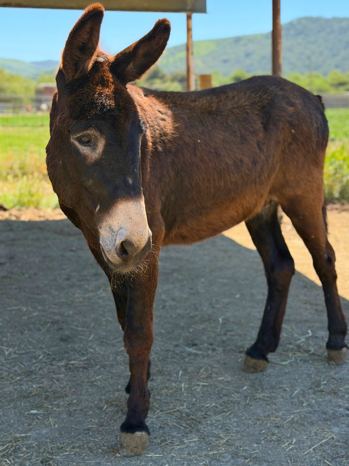 Jeff was rescued as a male stud donkey who was very sick and covered in lice. It took multiple flea baths and a lot of time and care to get rid of the lice so he could start to heal and feel comfortable in his body again. He is a larger donkey with a quiet and strong presence and a very big heart. Jeff does not have a sponsor yet. Please sponsor Jeff as we continue to give him the care he needs.