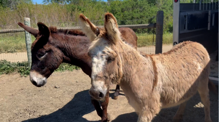 Rescued donkeys arriving at RTF’s Lompoc, Calif., headquarters sanctuary.
